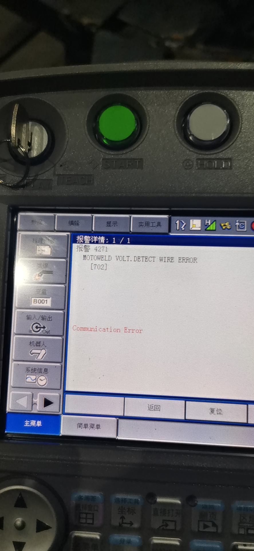 焊接機(jī)器人報(bào)警9001,4271焊機(jī)電壓反饋檢測(cè)線異常